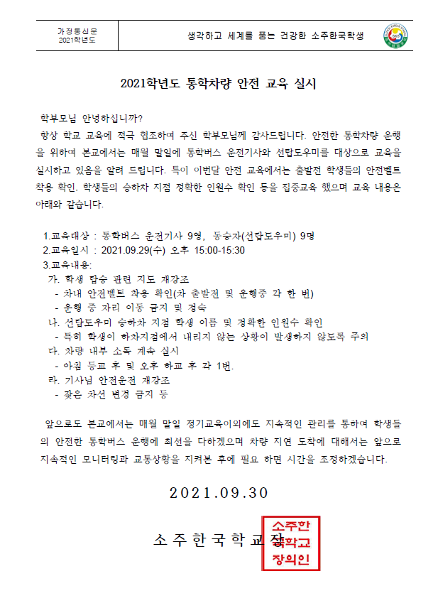 2021Çг⵵ ÅëÇÐÂ÷·® ¾ÈÀü ±³À° ½Ç½Ã