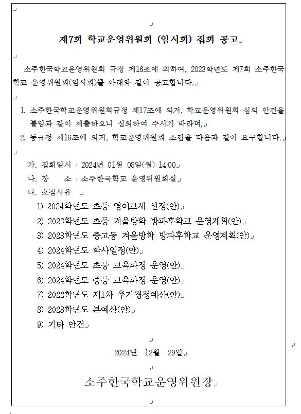 2023Çг⵵ Á¦7ȸ Çб³¿î¿µÀ§¿øÈ¸(ÀÓ½Ãȸ) Áýȸ °ø°í