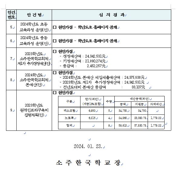 2023Çг⵵ Á¦7ȸ Çб³¿î¿µÀ§¿øÈ¸(ÀÓ½Ãȸ) °á°ú ¾Ë¸²