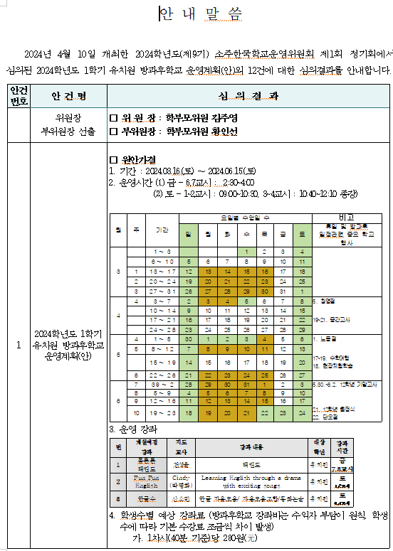 2024Çг⵵(Á¦9±â)Çб³¿î¿µÀ§¿øÈ¸ Á¦1ȸ(Á¤±âȸ) °á°ú ¾È³»