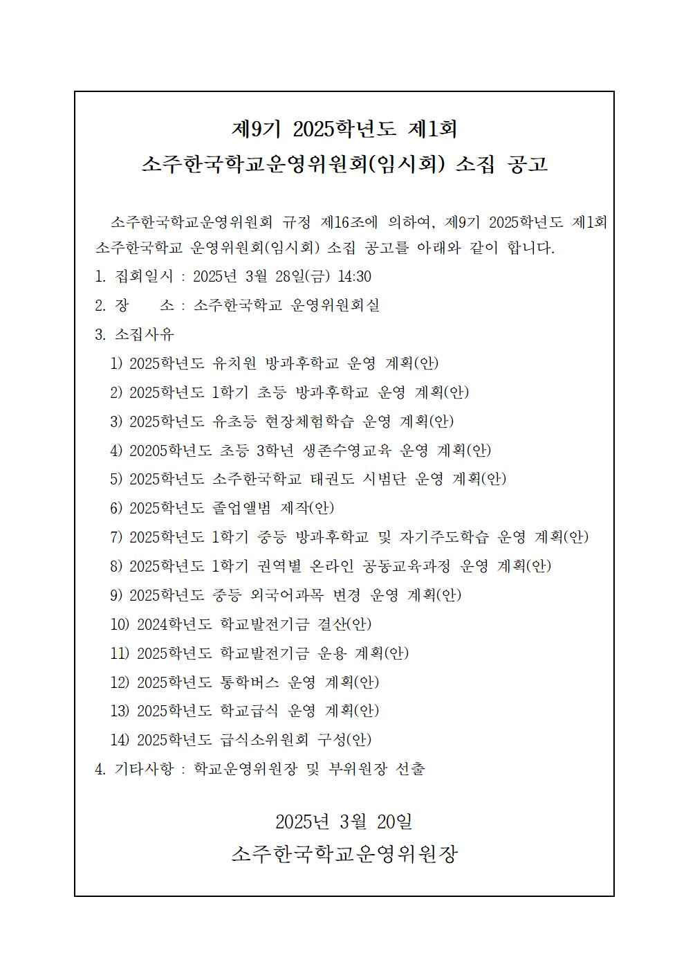2025Çг⵵ Á¦1ȸ ¼ÒÁÖÇѱ¹Çб³¿î¿µÀ§¿øÈ¸(ÀÓ½Ãȸ) ¼ÒÁý °ø°í