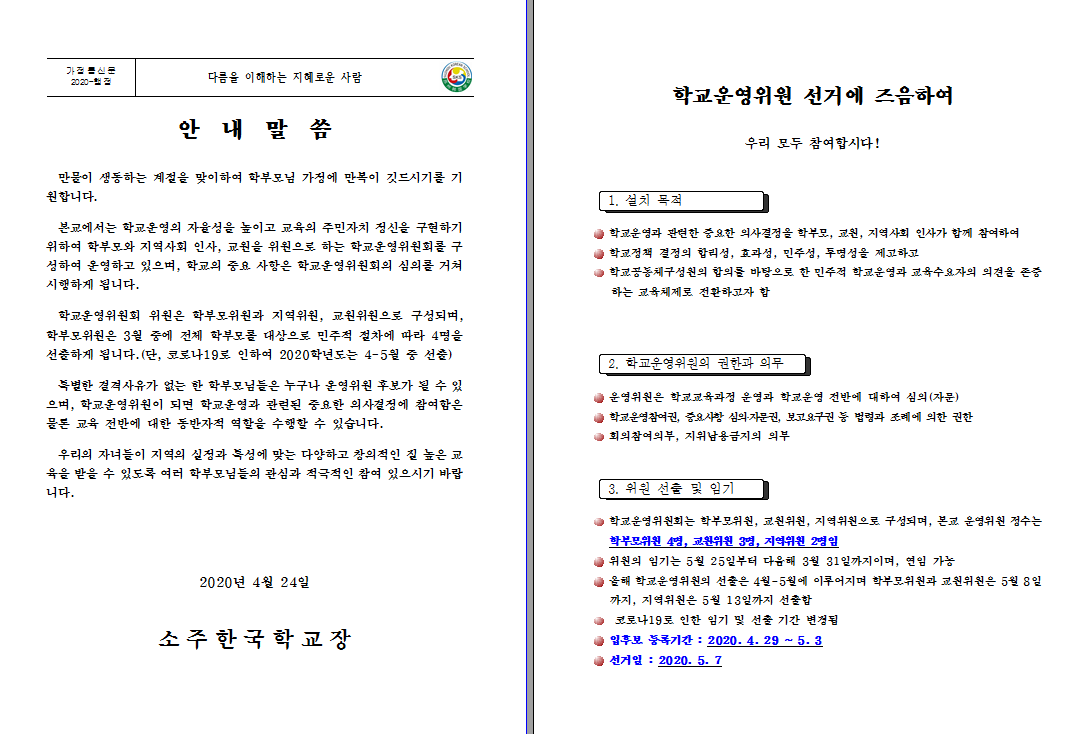 Á¦6±â ¼ÒÁÖÇѱ¹Çб³¿î¿µÀ§¿ø ¼±ÃâÀ» À§ÇÑ »çÀüÈ«º¸