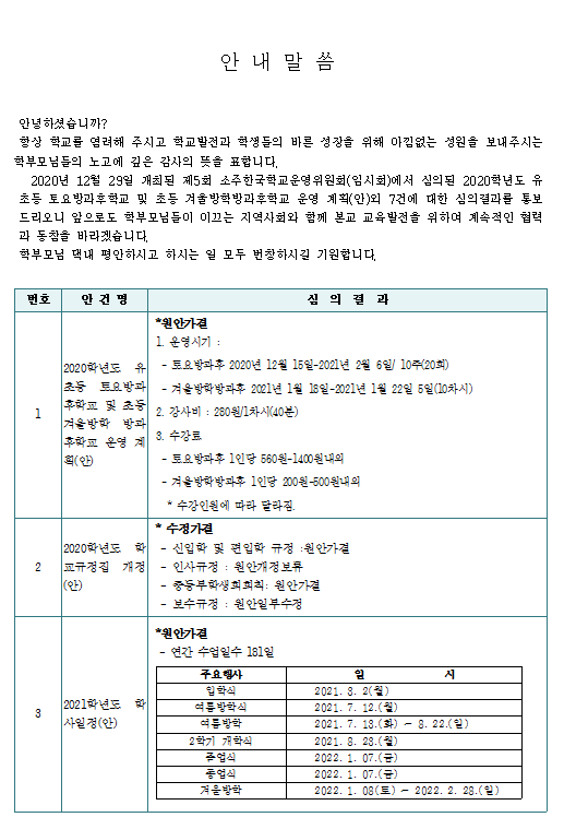 2020Çг⵵ Á¦5ȸ Çб³¿î¿µÀ§¿øÈ¸(ÀÓ½Ãȸ) Áýȸ °á°ú °ø°³