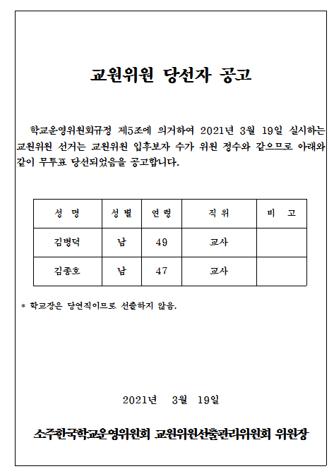 Á¦7±â ¼ÒÁÖÇѱ¹Çб³ ±³¿øÀ§¿ø ´ç¼± °ø°í