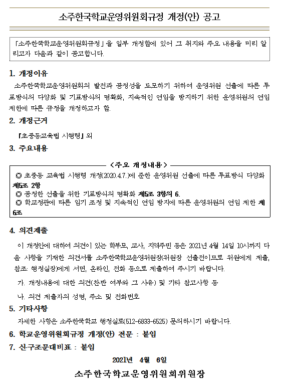Çб³¿î¿µÀ§¿øÈ¸ ±ÔÁ¤ °³Á¤(¾È) °ø°í