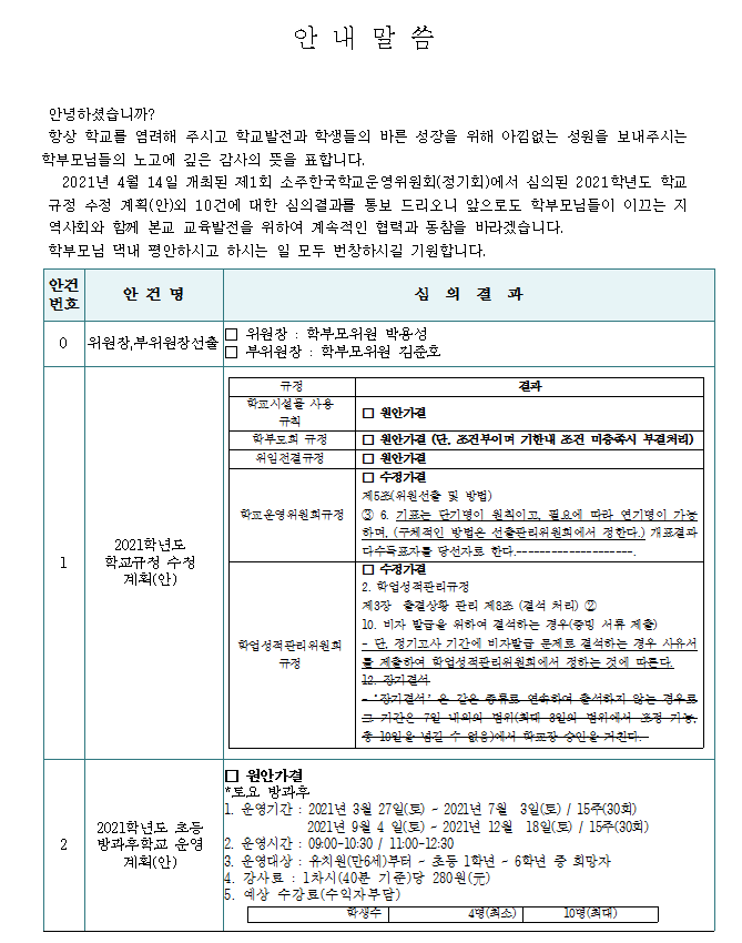 2021Çг⵵ Á¦1ȸ Çб³¿î¿µÀ§¿øÈ¸(Á¤±âȸ) Áýȸ °á°ú ¾Ë¸²