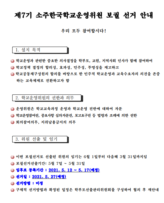 Á¦7±â ¼ÒÁÖÇѱ¹Çб³ ÇкθðÀ§¿ø º¸±È ¼±°Å ¾È³»