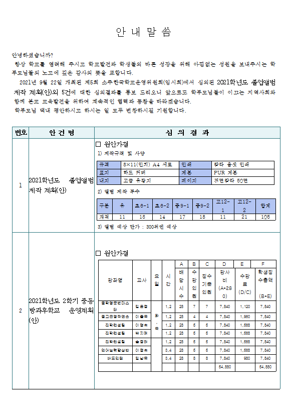 Á¦5ȸ Çб³¿î¿µÀ§¿øÈ¸(ÀÓ½Ãȸ) Áýȸ °á°ú ¾Ë¸²