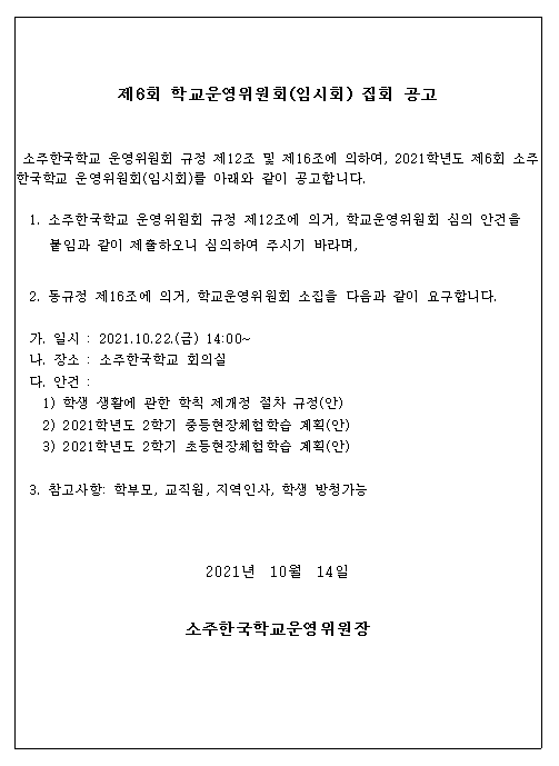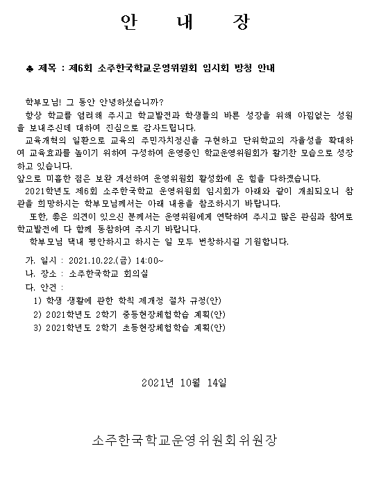 2021Çг⵵ Á¦6ȸ Çб³¿î¿µÀ§¿øÈ¸(ÀÓ½Ãȸ) °³ÃÖ ¾Ë¸²