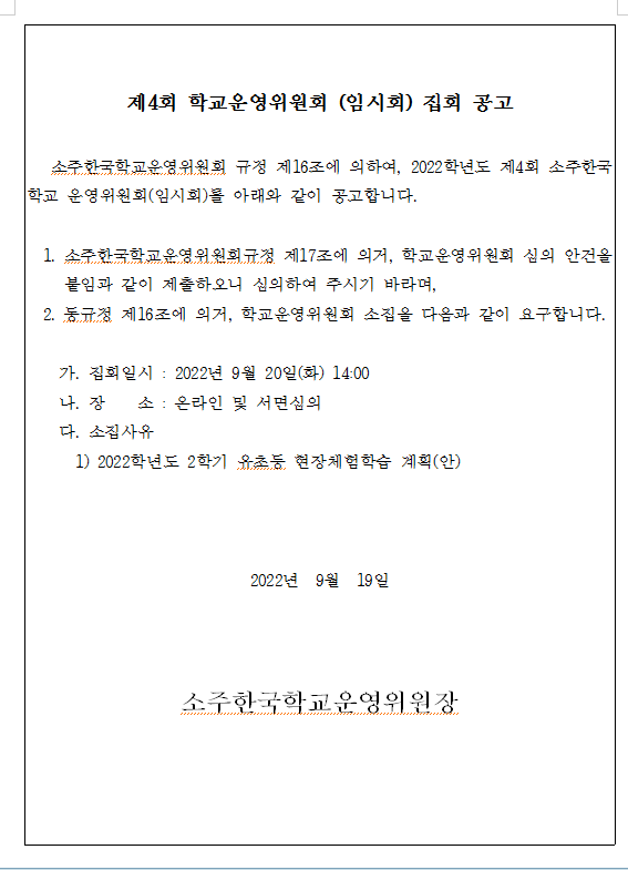 2022Çг⵵ Á¦4ȸ Çб³¿î¿µÀ§¿øÈ¸(ÀÓ½Ãȸ) Áýȸ °ø°í