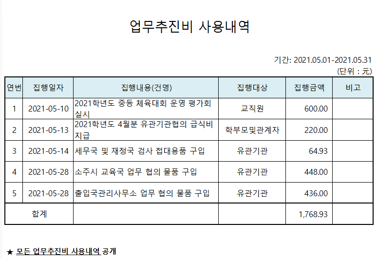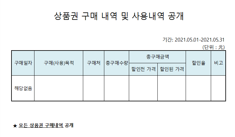 2021Çг⵵ 5¿ù ¾÷¹«ÃßÁøºñ ¹× »óǰ±Ç ±¸¸Å³»¿ª °ø°³