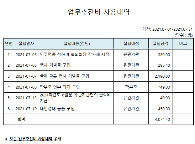 2021Çг⵵ 7¿ù ¾÷¹«ÃßÁøºñ ¹× »óǰ±Ç ±¸¸Å³»¿ª °ø°³