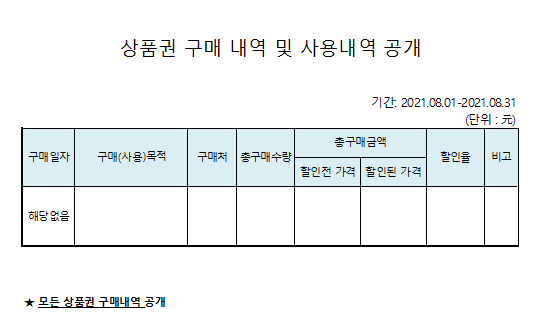 2021Çг⵵ 8¿ù ¾÷¹«ÃßÁøºñ ¹× »óǰ±Ç ±¸¸Å³»¿ª °ø°³