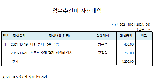 2021Çг⵵ 10¿ù ¾÷¹«ÃßÁøºñ ¹× »óǰ±Ç ±¸¸Å³»¿ª °ø°³